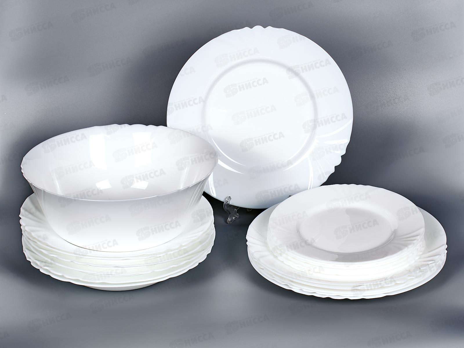 Рассчитан на 6 персон. Тарелка десертная 19,5 см - 6 шт. Тарелка обеденная 25 см - 6 шт. Тарелка глубокая 21,5 см - 6 шт. Салатник большой 24 см - 1 шт.