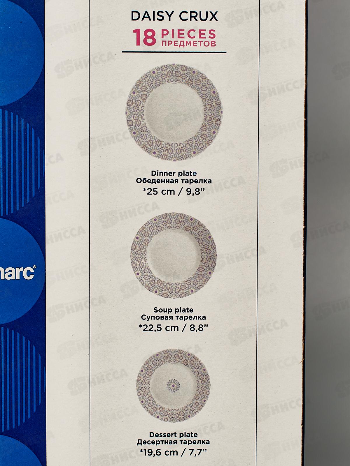 Комплектация: тарелка десертная 19,6 см — 6 шт, тарелка обеденная 25 см — 6 шт, тарелка глубокая 17 см — 6 шт.