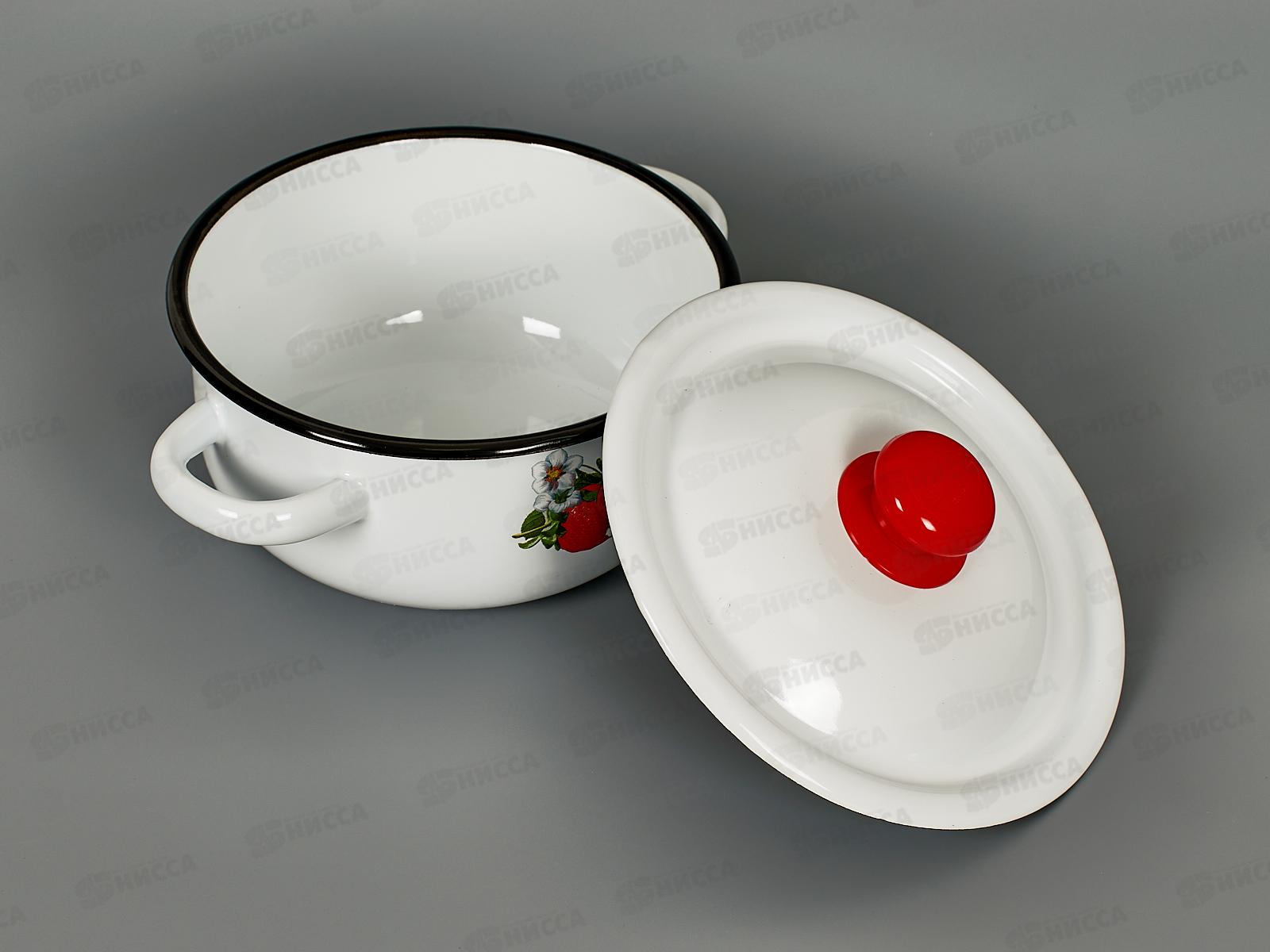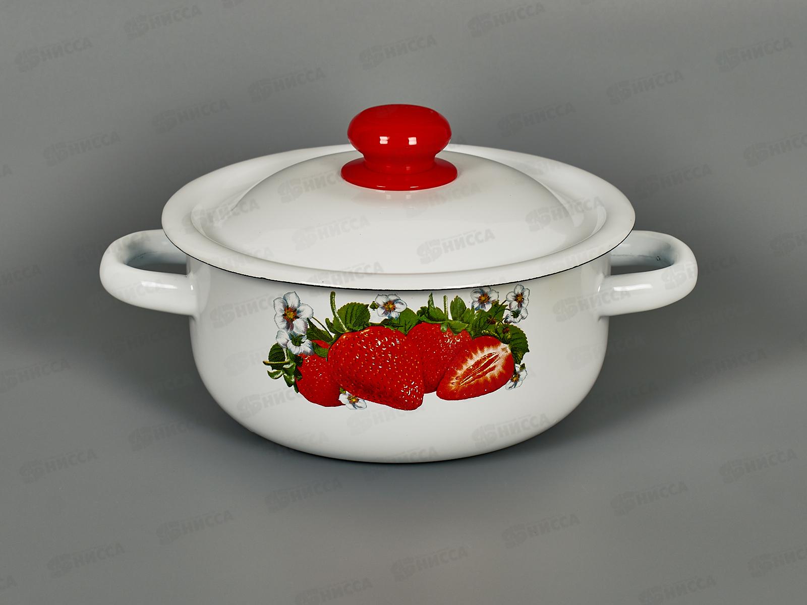 Кастрюля 1,5л цилиндрическая Клубника садовая, белая с пластмассовой кнопкой С1607.3*59