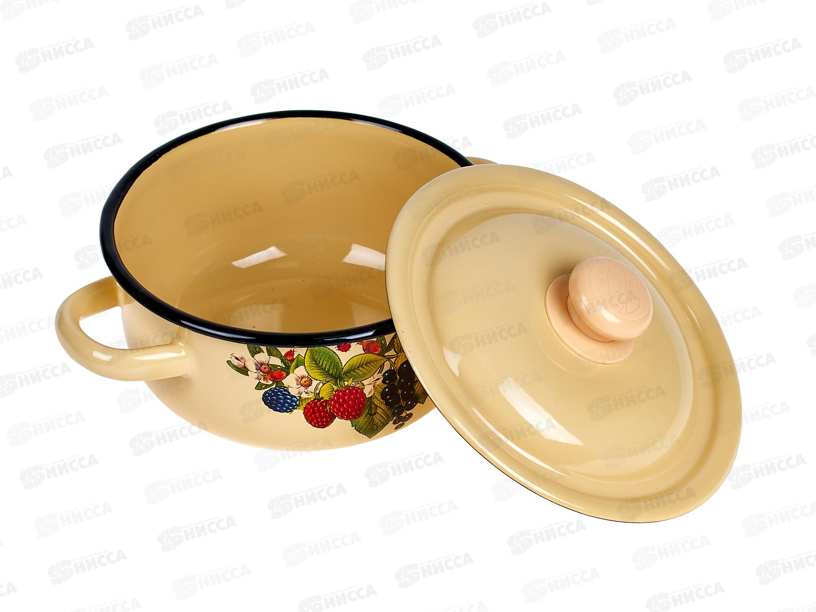 Кастрюля 1,5л цилиндрическая декорированная палевая с пластиковой кнопкой С1607.3П