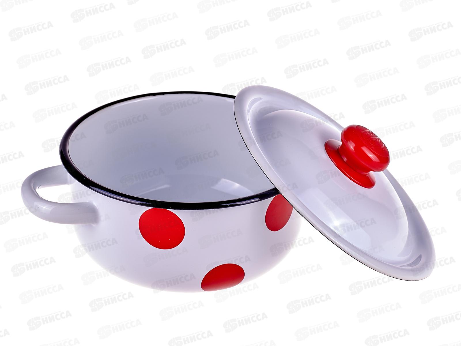 Кастрюля 1,5л цил Красный горох, белая с пластм.кноп. С1607.3*79