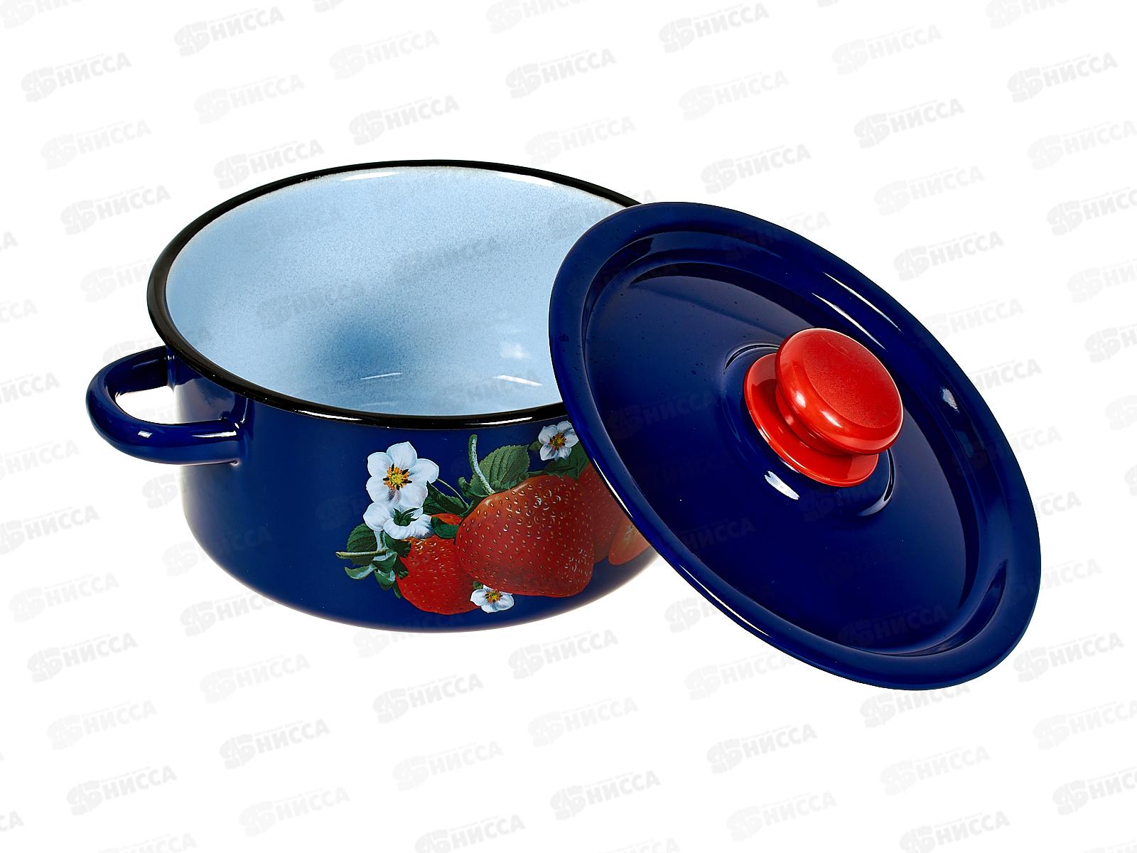 Кастрюля 2,0л цилиндрическая Клубника садовая цвет кобальт с пластмассовой кнопкойС1610.3К*59