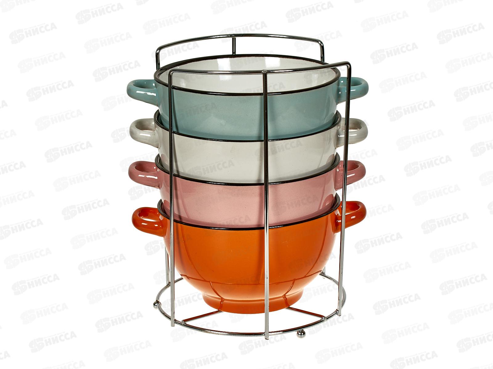 Состав набора: бульонница 4 шт, подставка 1 шт