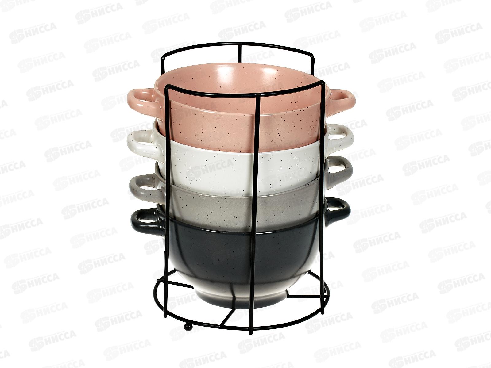 Состав набора: бульонница 4 шт, подставка 1 шт