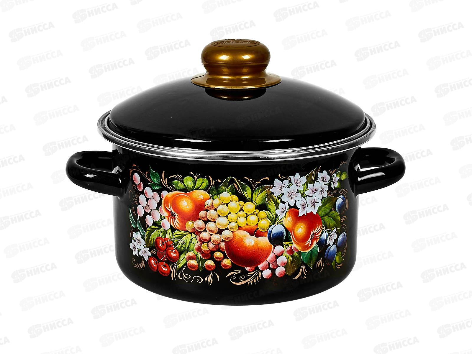 Кастрюля 2,0л эмалированная с рисунком черная 10-1610/6 Жостово