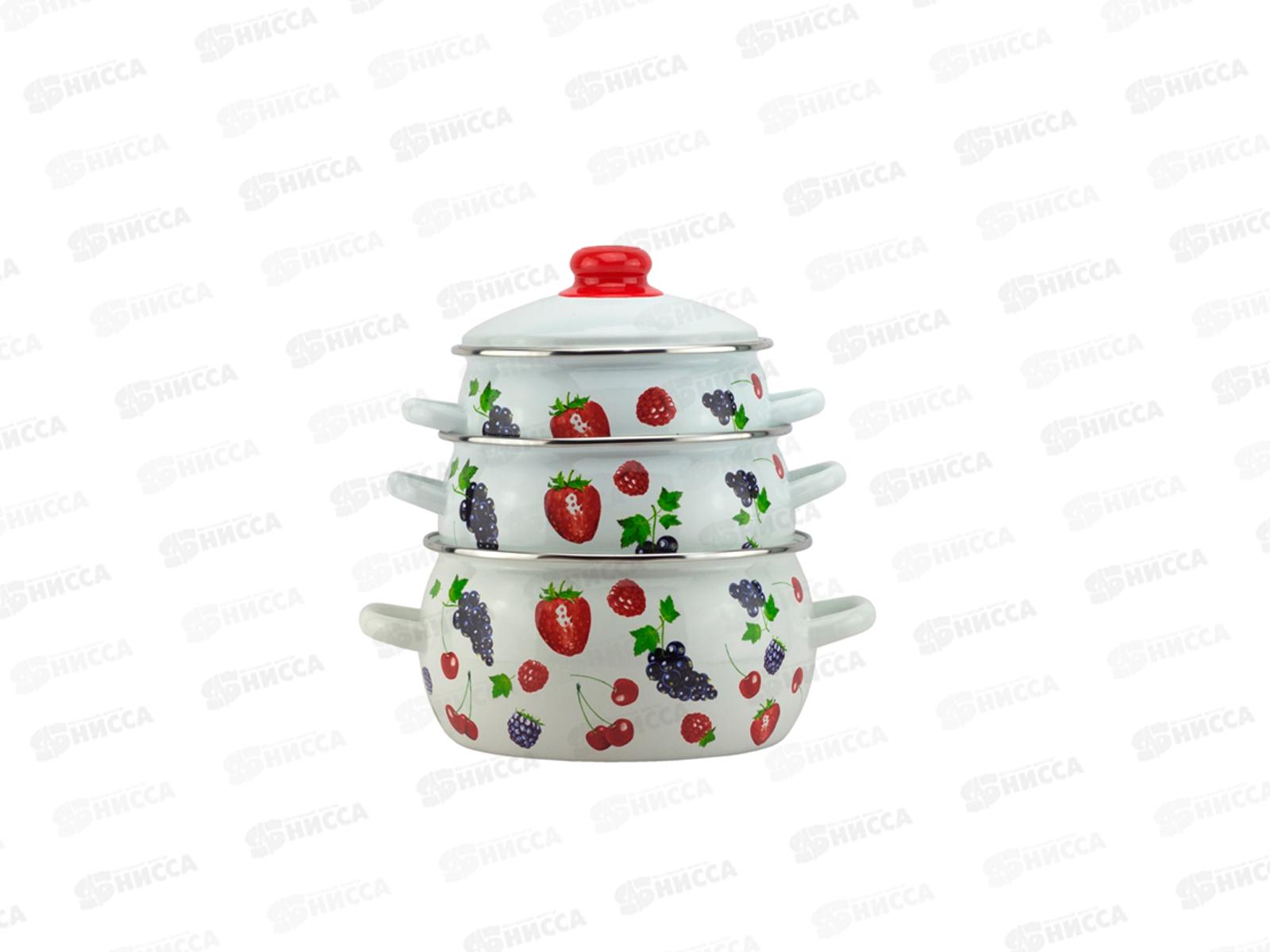 Набор кастрюль Ягодки ситец белый (2+3+4л) 10-312/7