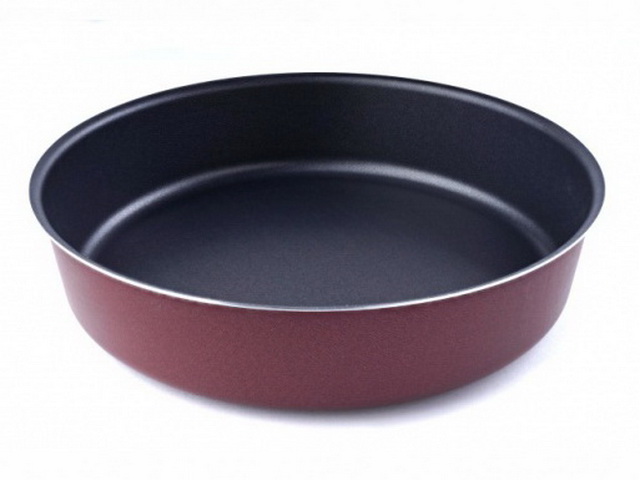 Тортница изготовлена из алюминия с внутренним антипригарным покрытием, которое не содержит PFOA, соединений свинца и кадмия. Покрытие исключает прилипание и пригорание пищи к поверхности посуды, обеспечивает легкость мытья. Высокопрочный тонкий алюминий прогревается равномерно и обеспечивает быстрое приготовление коржа, а многослойное антипригарное покрытие не дает тесту прилипать к стенкам.