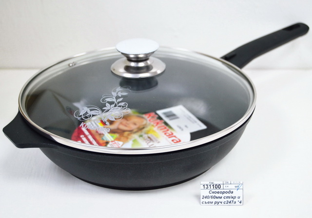 Сковорода 240/60мм стеклянная крышка и съемная ручка с247а *4