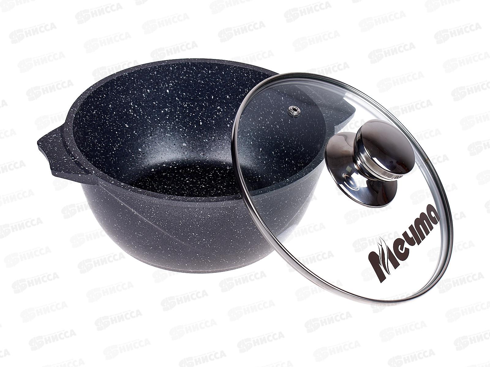Кастрюла со стеклянной крышкой объемом 2 литра, Мечта Гранит. Кастрюля литая из высококачественного пищевого алюминия. Сверхпрочное антипригарное покрытие отличается особой износостойкостью и превосходными антипригарными свойствами, рассчитано на интенсивное использование в течение длительного срока. Толщина покрытия до 55 мкр позволяет готовить с минимальным количеством масла, сохраняя вкусовые и полезные свойства продуктов. Подходит для использования на газовых, электрических, стеклокерамических кухонных плитах, в духовом шкафу. Можно мыть в посудомоечной машине