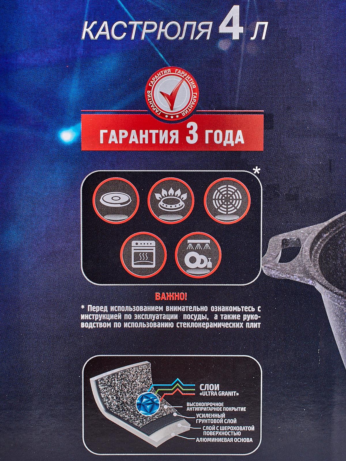Кастрюля 4,0л со стеклянной крышкой АП Granit ultra red кга42а *3