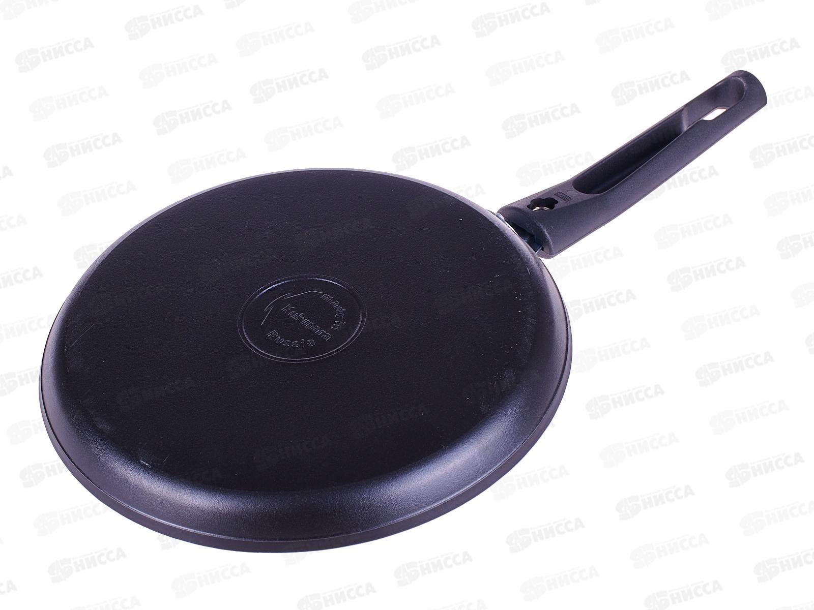 Блинная сковорода - настоящая находка для каждой хозяйки: подойдет не только для жарки блинов, но и для приготовления яичницы, оладий и других вкусных блюд. Блинная сковорода Kukmara из литого алюминия имеет отличные теплораспределительные и теплоаккумулирующие свойства, и блины в ней получаются пропеченными и ароматными. Сковороду со съемной ручкой можно использовать для запекания блюд в духовом шкафу. Удобное хранение обеспечивает съемная ручка. Сковорода имеет антипригарное покрытие увеличенной прочности, абсолютно безопасное для здоровья, без PFOA. Допускает использование только деревянных и силиконовых предметов. Покрытие не требует особенного ухода, легко моется как вручную, так и в посудомоечной машине. Идеальное соотношение демократичной цены, традиционного дизайна и проверенного покупателями качества. Сковорода блинная Kukmara с антипригарным покрытием имеет ровное, окрашенное дно, которое обеспечивает идеальное прилегание дна посуды к плите для более быстрого и равномерного нагрева посуды и не царапает нежную поверхность стеклокерамической плиты. Диаметр сковороды - 22 см.