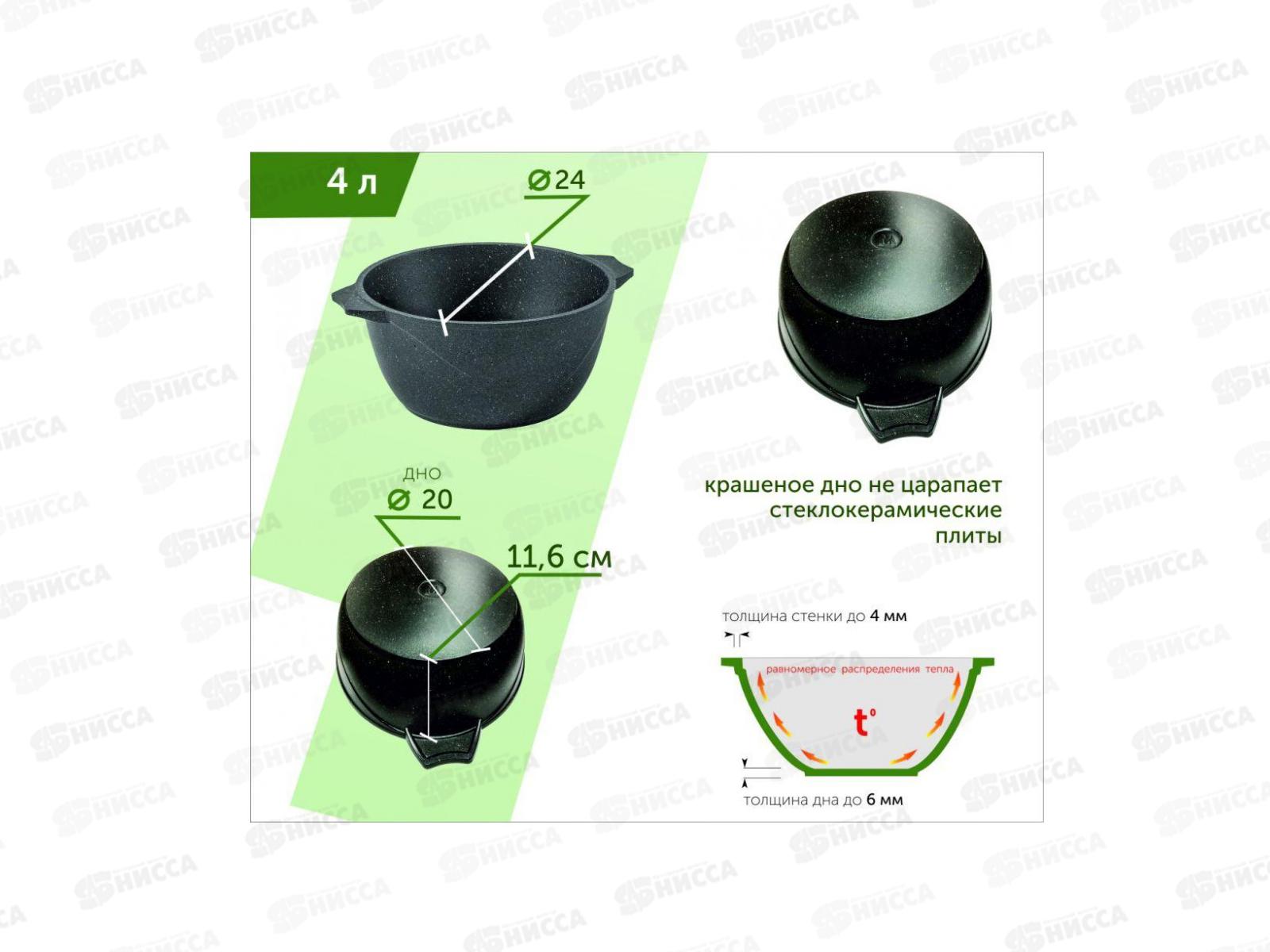 Кастрюля 4,0л ГРАНИТ индукция Black 44802и