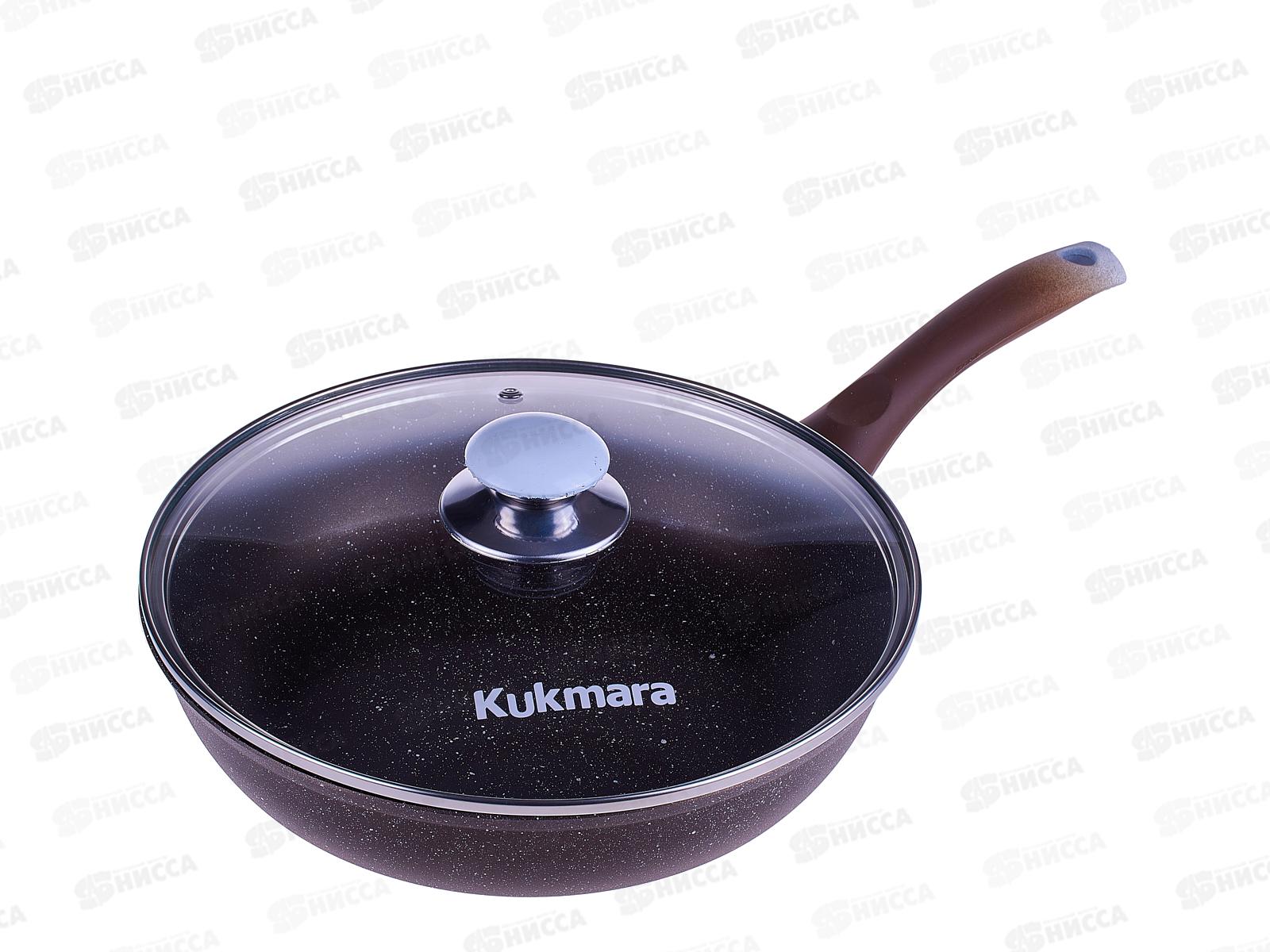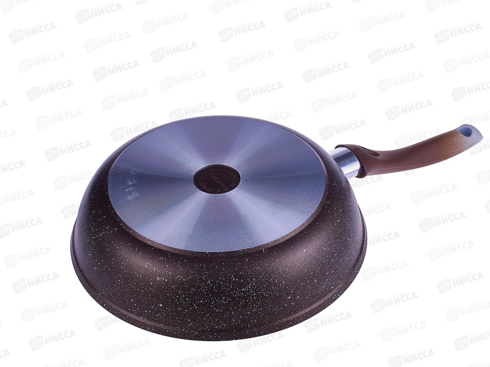 Сковорода 260/60мм с ручкой стеклянная крышка, антипригарное покрытие смк26603а (кофейный мрамор) *5
