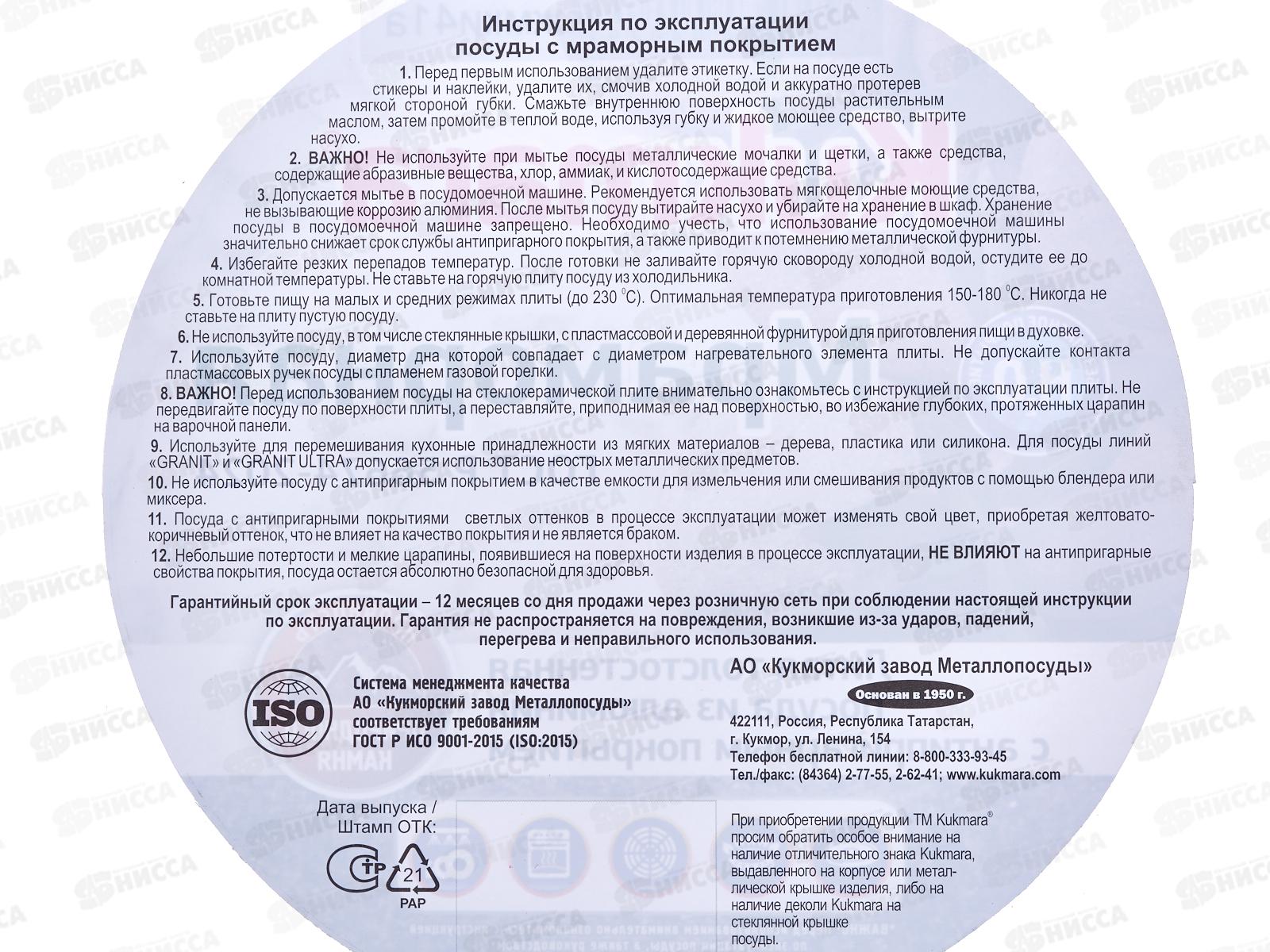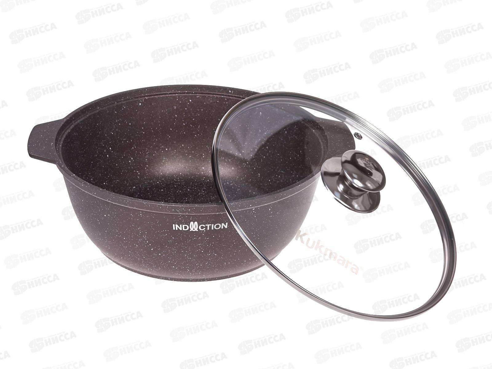Кастрюля-жаровня 4л со стеклянной крышкой АП кофейный мрамор жмки41а