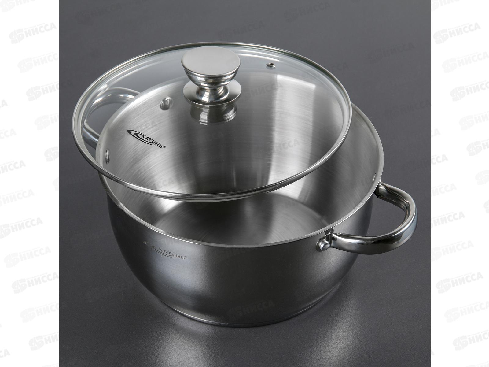 Кастрюля серии "Антея" изготовлена из высококачественной нержавеющей стали. Благодаря прочному трехслойному капсульному дну, равномерно распределяющему тепло и прекрасно сохраняющему температуру, приготовление пищи происходит быстрее. Крышка изготовлена из жаростойкого прозрачного стекла, оснащена ручкой, металлическим ободом и отверстием для выпуска пара. Ручки прикреплены методом клепочной фиксации. Форма корпуса коническая, наружная полировка зеркальная, внутри матовая. Посуда данной серии подходит для всех современных типов плит, а также для чистки в посудомоечной машине.