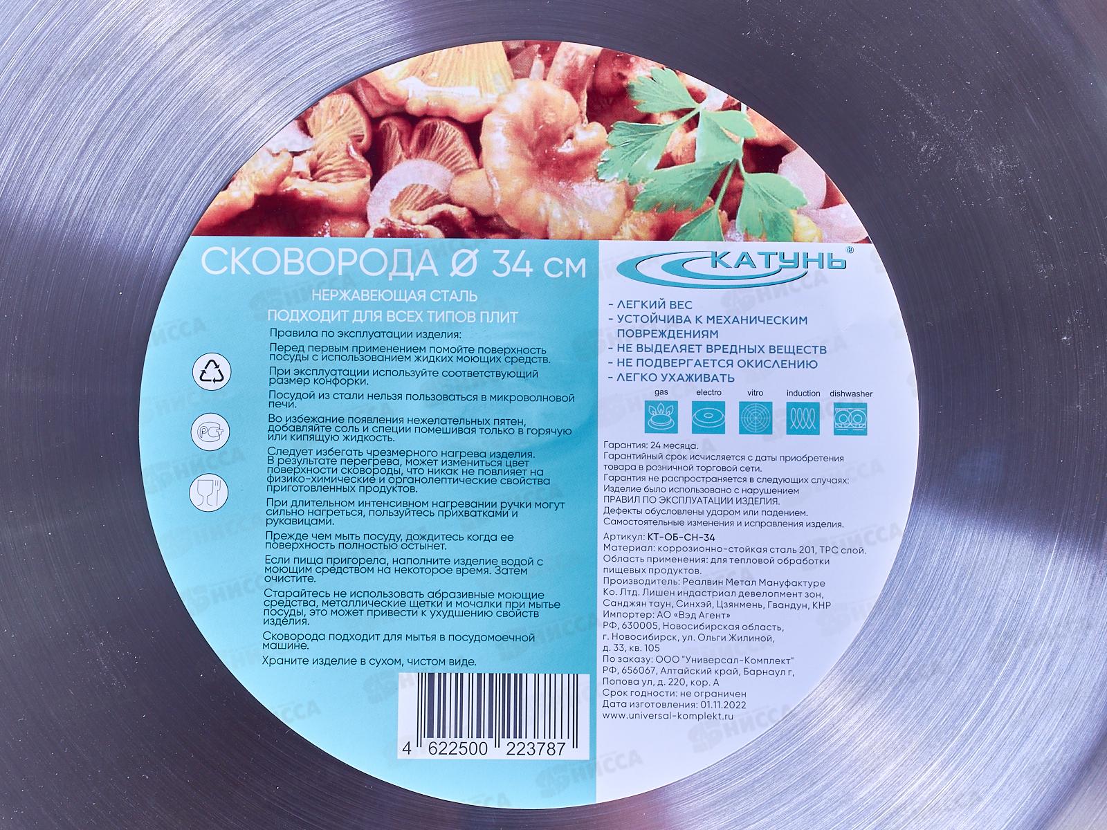 Сковорода 34см без крышки (общепит) корпус 0,6мм индукционное дно КТ-ОБ-СH-34