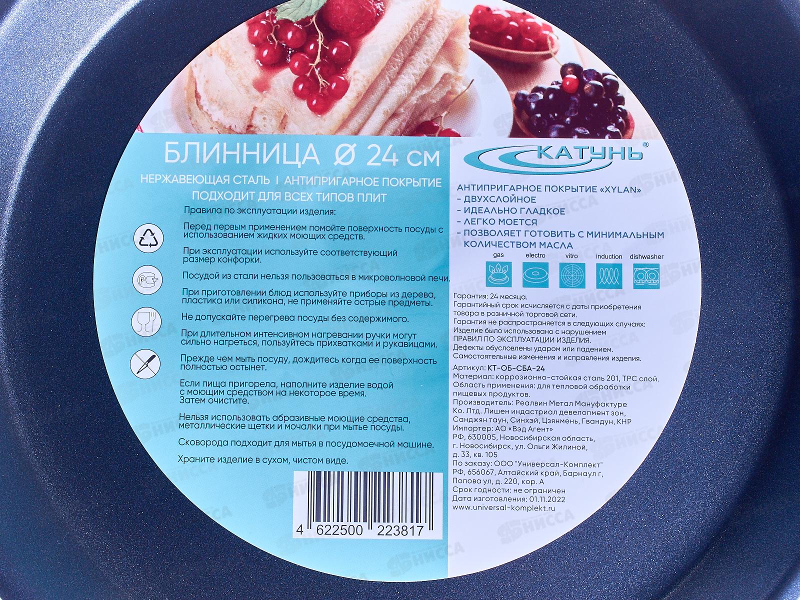 Блинница 24см антипригарное покрытие индукция (ОБЩЕПИТ) КТ-ОБ-СБА-24