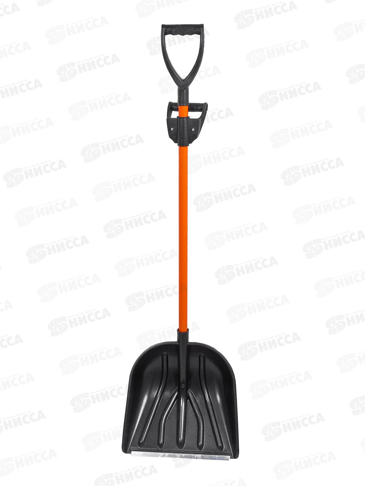 Лопата снеговая "Рысь" 410*460мм пластиковая с алюминиевой планкой, алюминиевый черенок, V ручка и доп.ручка
