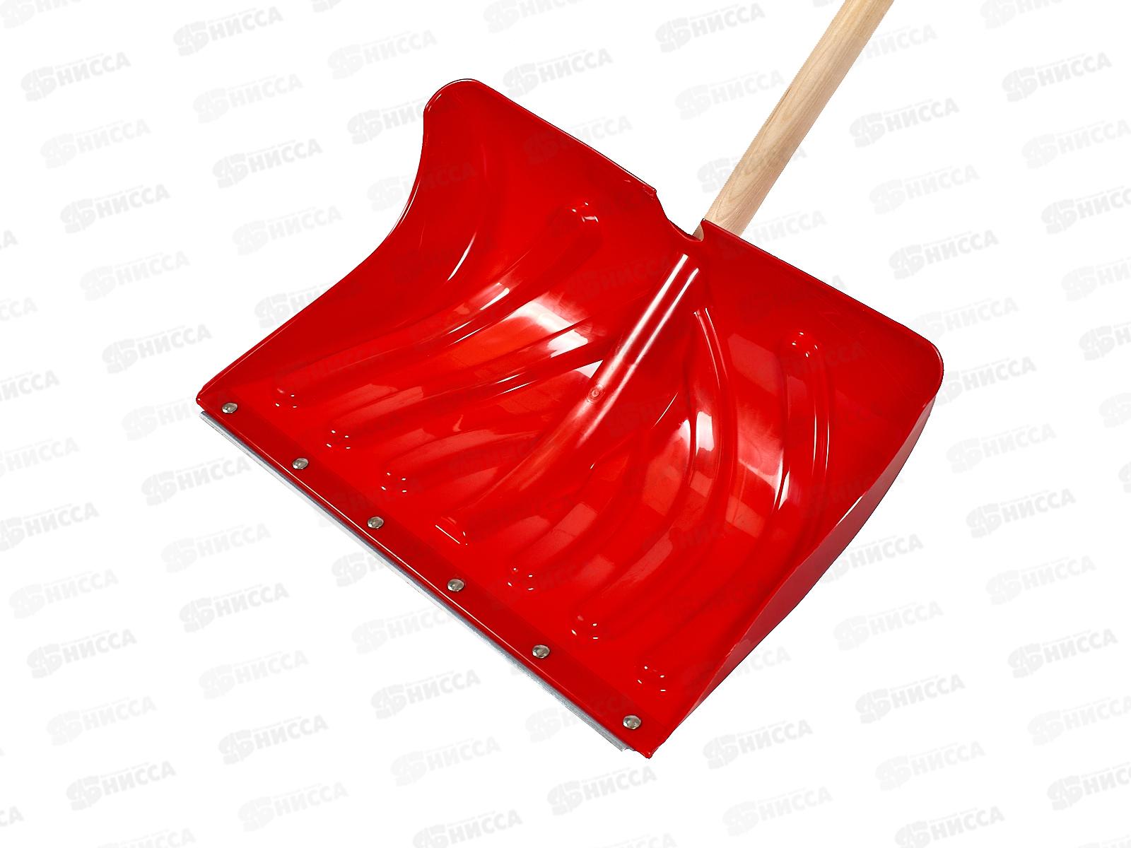 Лопата снеговая SnowПИНГВИН 1380*490*340мм стальная планка на заклёпках, с деревянным черенком высшего сорта, красная *5/75