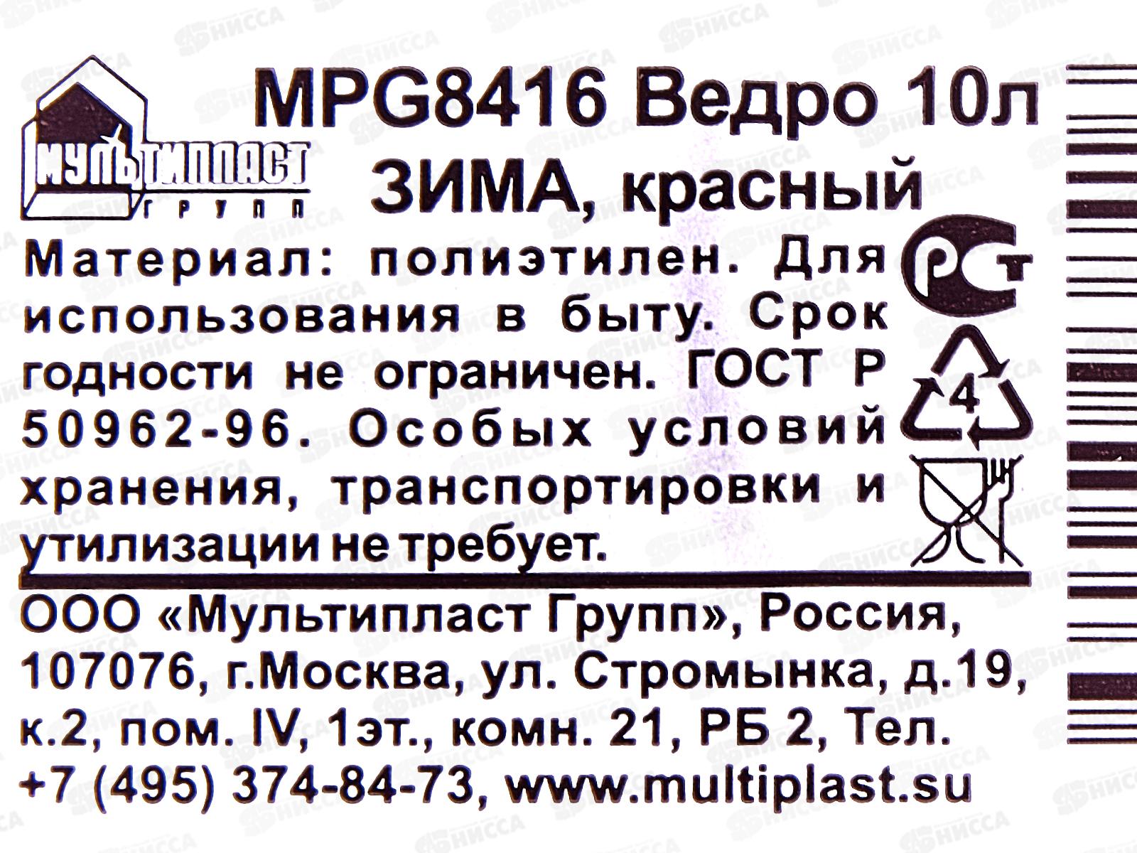 Ведро 10л ЗИМА Красный MPG8416 *20 МП