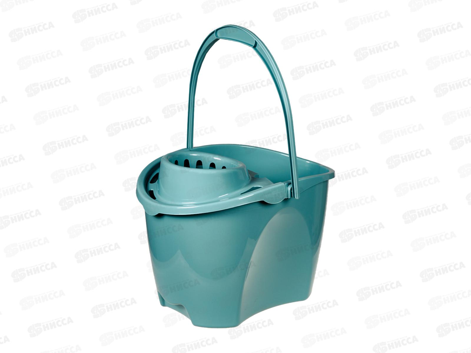 Ведро 12л "Престо" овальное со сливом и отжимом С646БИР бирюзовое