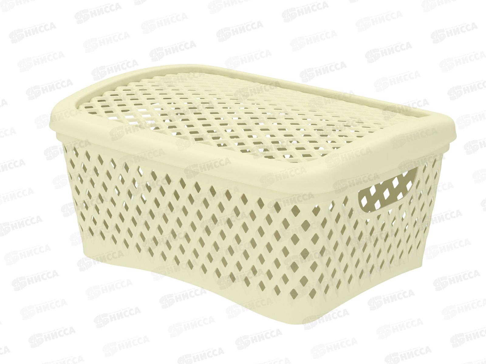 Корзинка с крышкой "Ромбики" S ваниль, АП 441 (255х190х120мм)