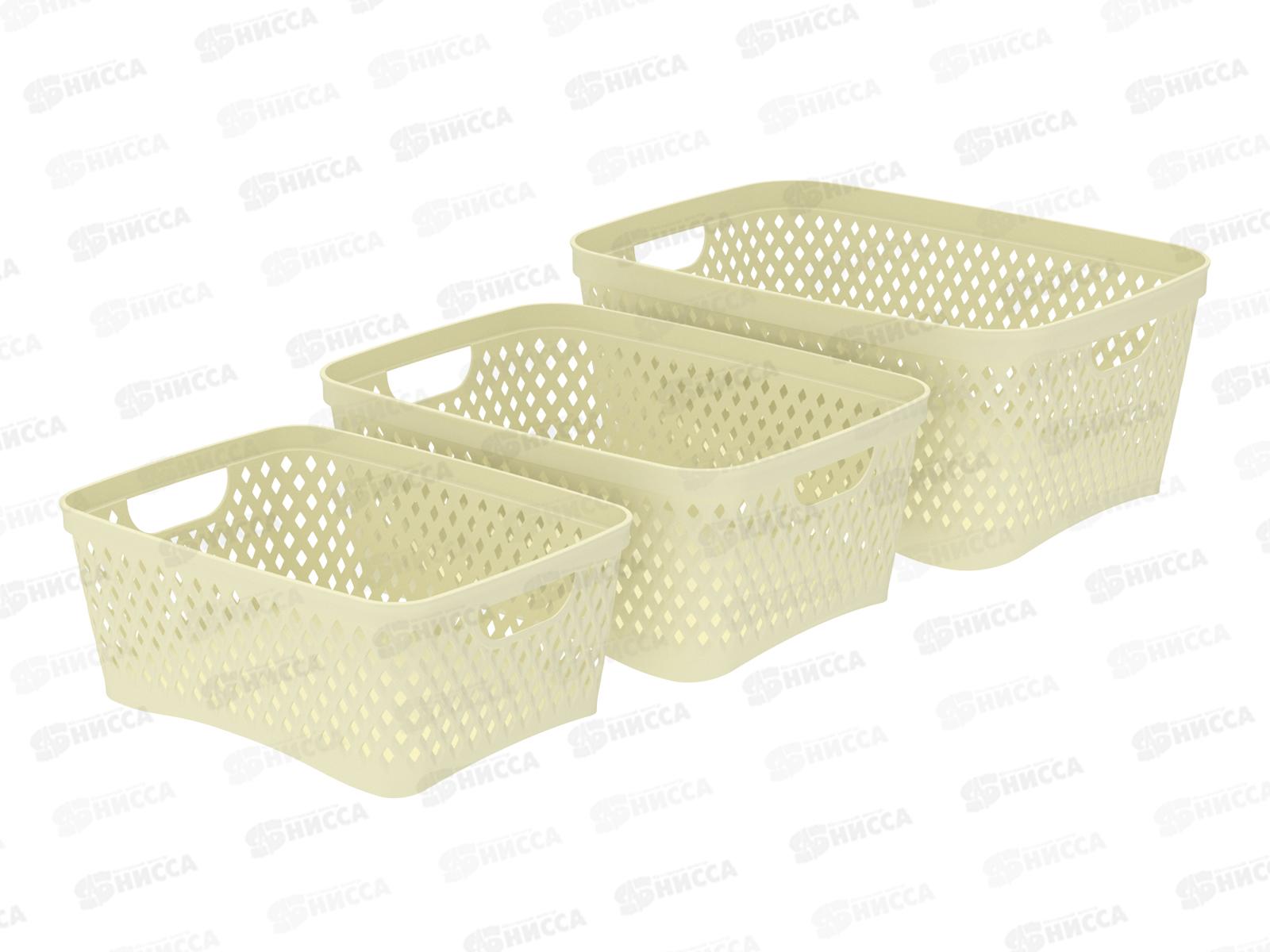 Набор корзинок "Ромбики" (3шт) ваниль, АП 448 (330х240х145мм)