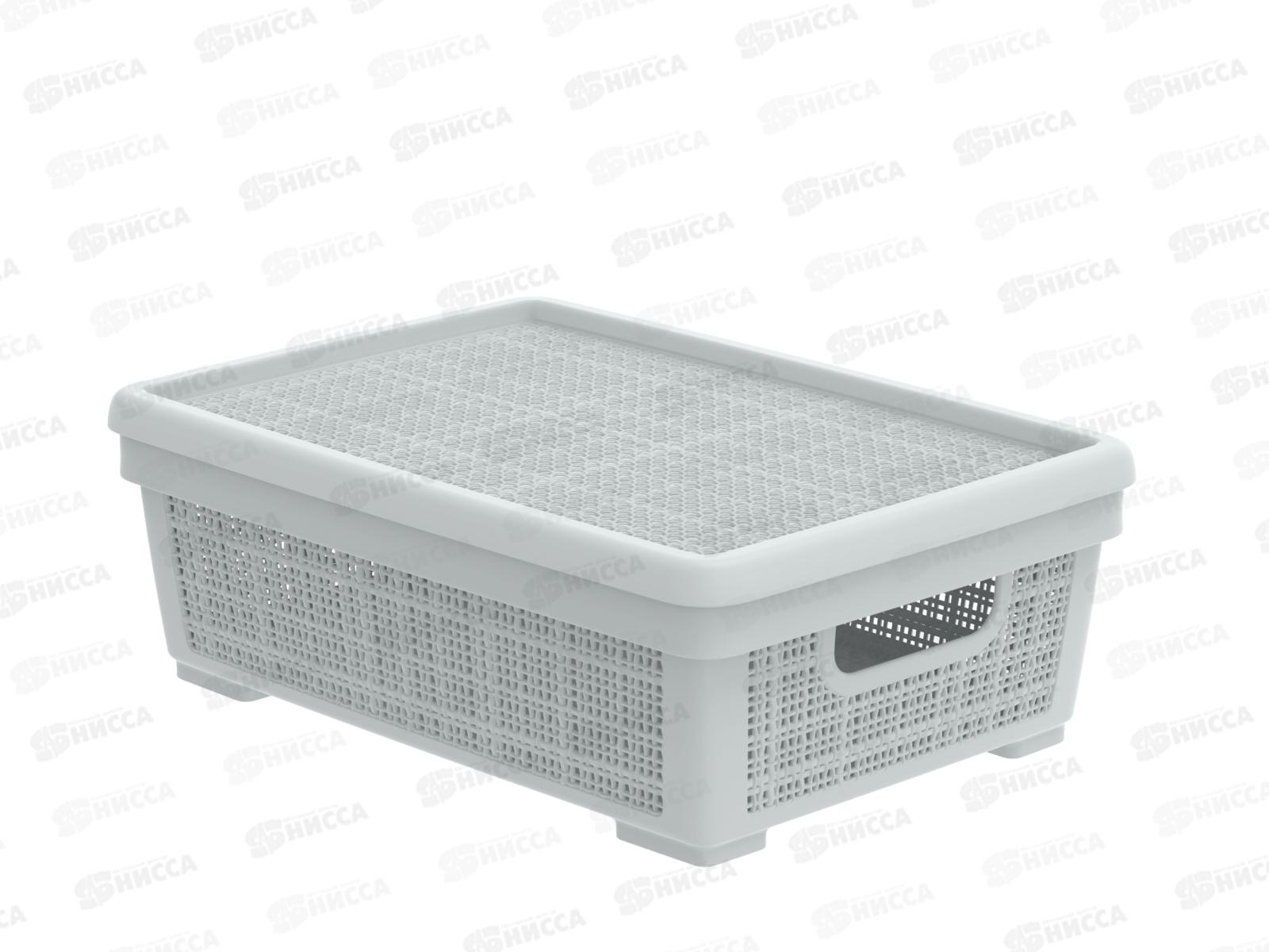 Корзина плетёная с крышкой "Лён" 11л, серый, АП 474 (400х284х137мм)