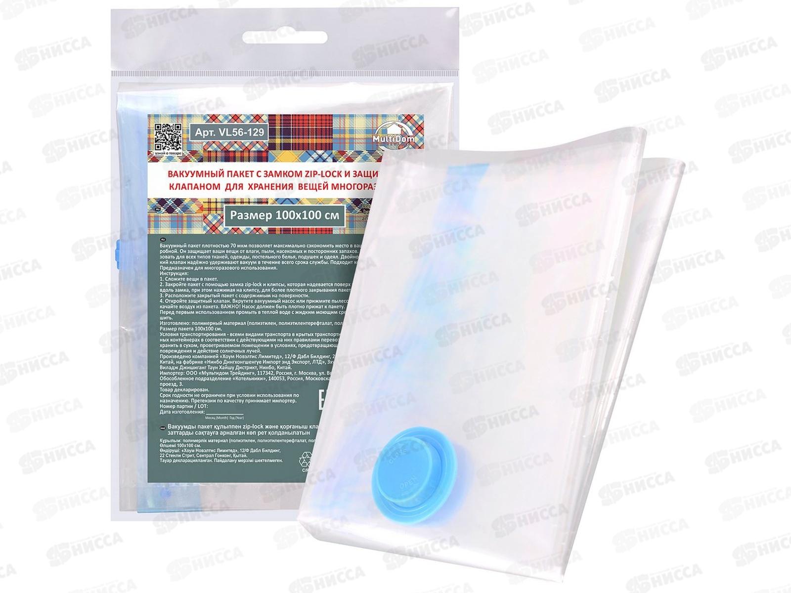 Вакуумный пакет с замком зип-лок и защитным клапаном для хранения 100*100 VL56-129