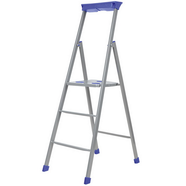 Облегченная металлическая конструкция стремянки с надежным механизмом, для строительно - монтажных работ. Материал: стальные профильные трубы 30х15мм. Высокая удобная дуга безопасности со встроенным лотком для инвентаря и отделением для инструментов. Широкая безопасная площадка со встроенными вставками противоскольжения и рифленой поверхностью. Имеются 3 металлические профильные ступени. Максимальная нагрузка до 100 кг.