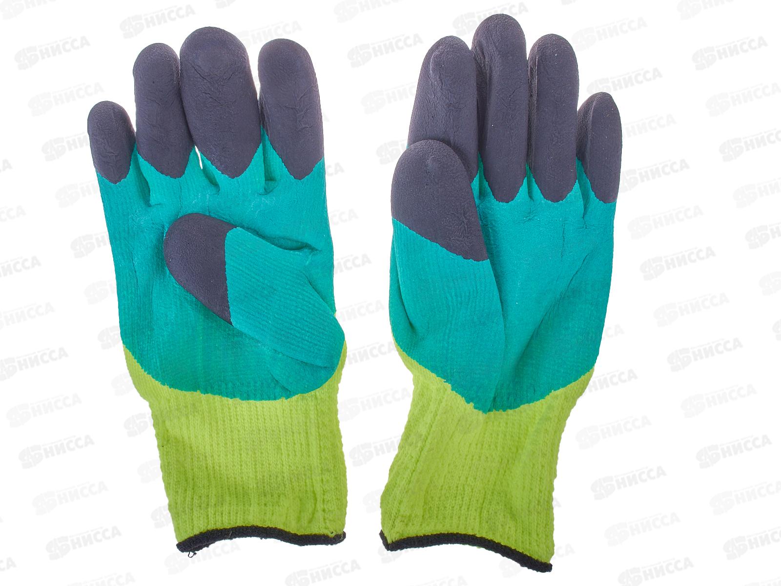 Перчатки хлопчатобумажные облитые синие/зеленые вспененные наладонником Зима №147 *10/480