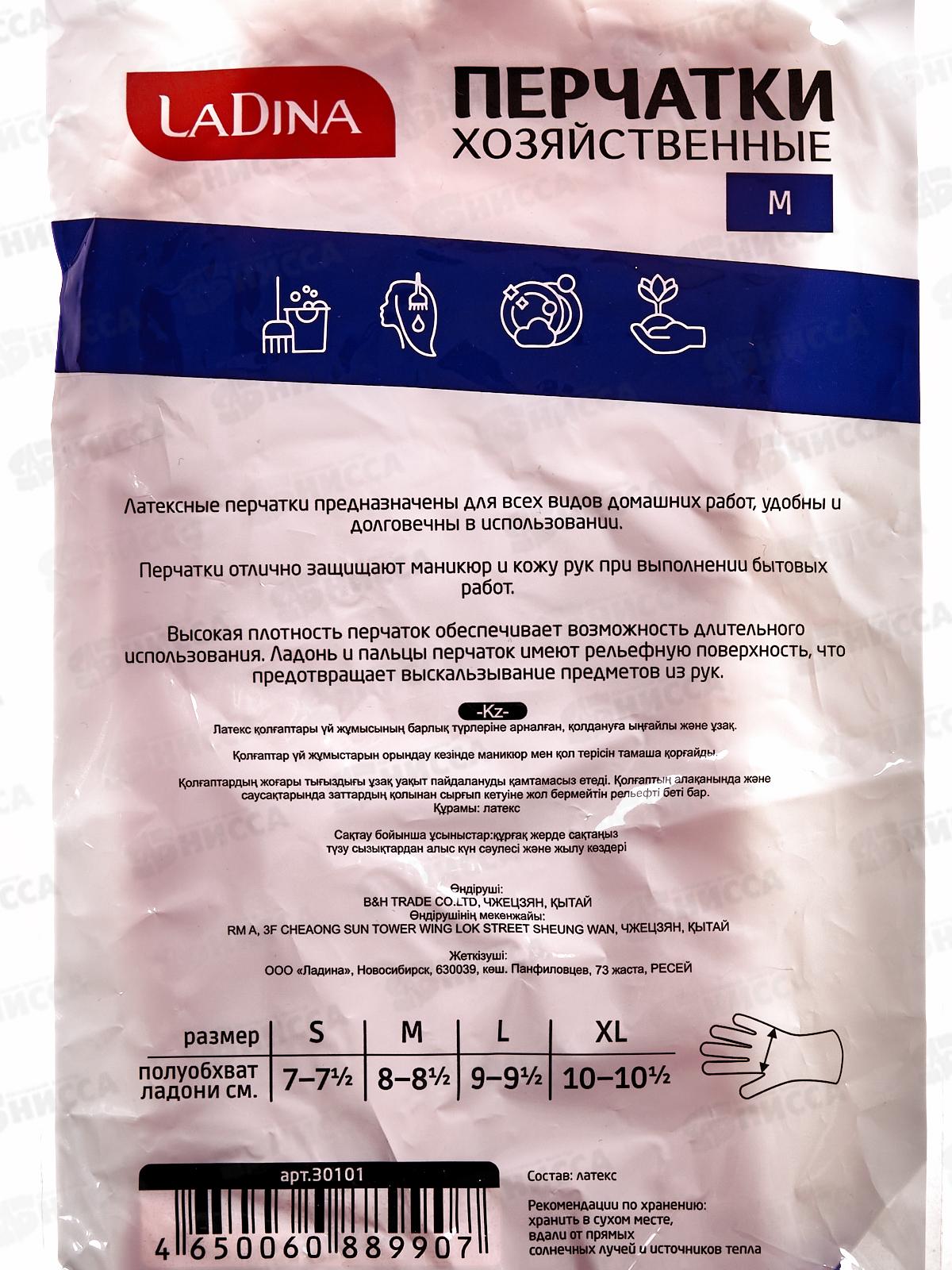 Перчатки резиновые Ladina размер M 30101 *12/240