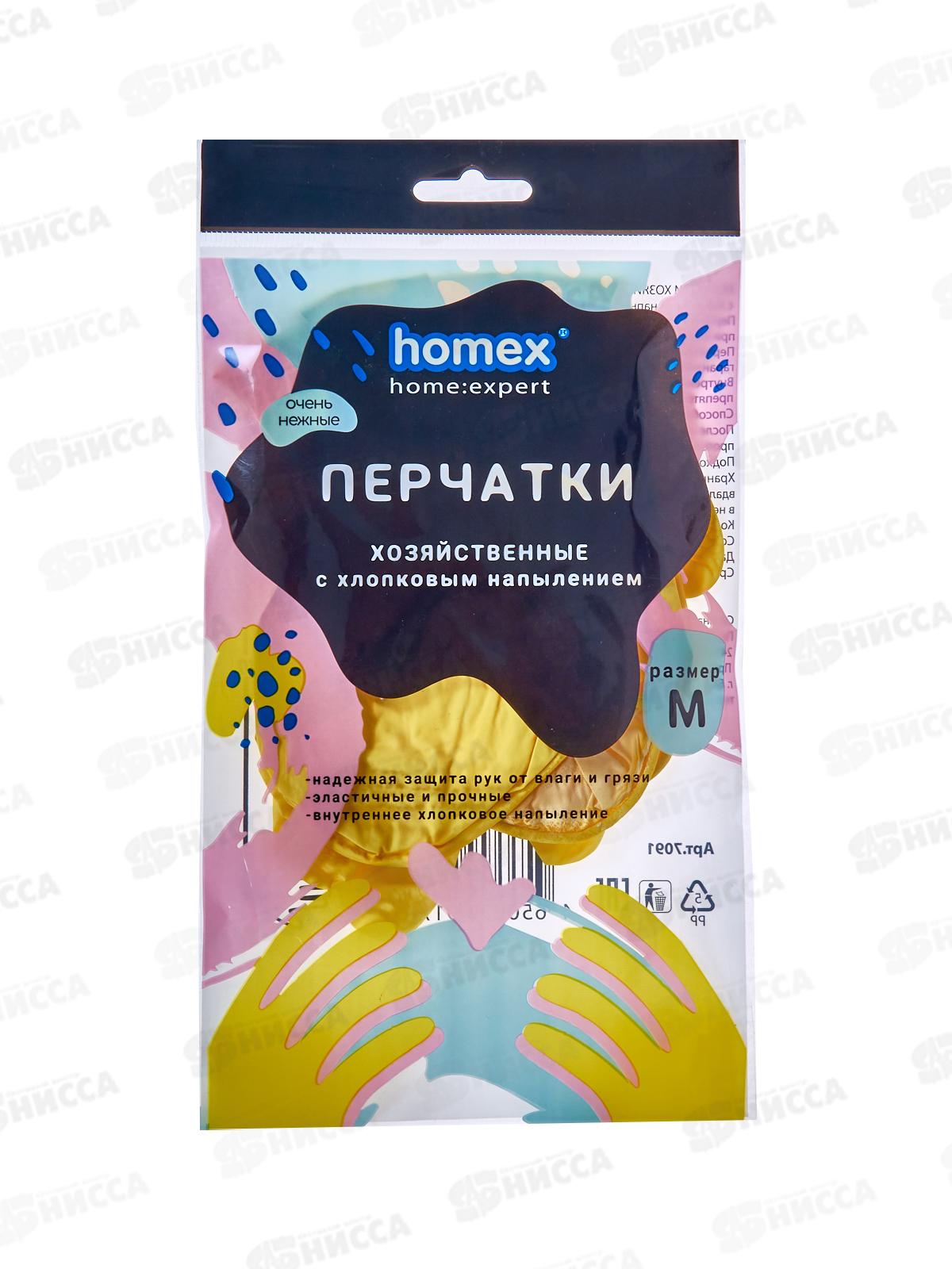Homex Перчатки хозяйственные с хлопковым напылением р.M Очень нежные