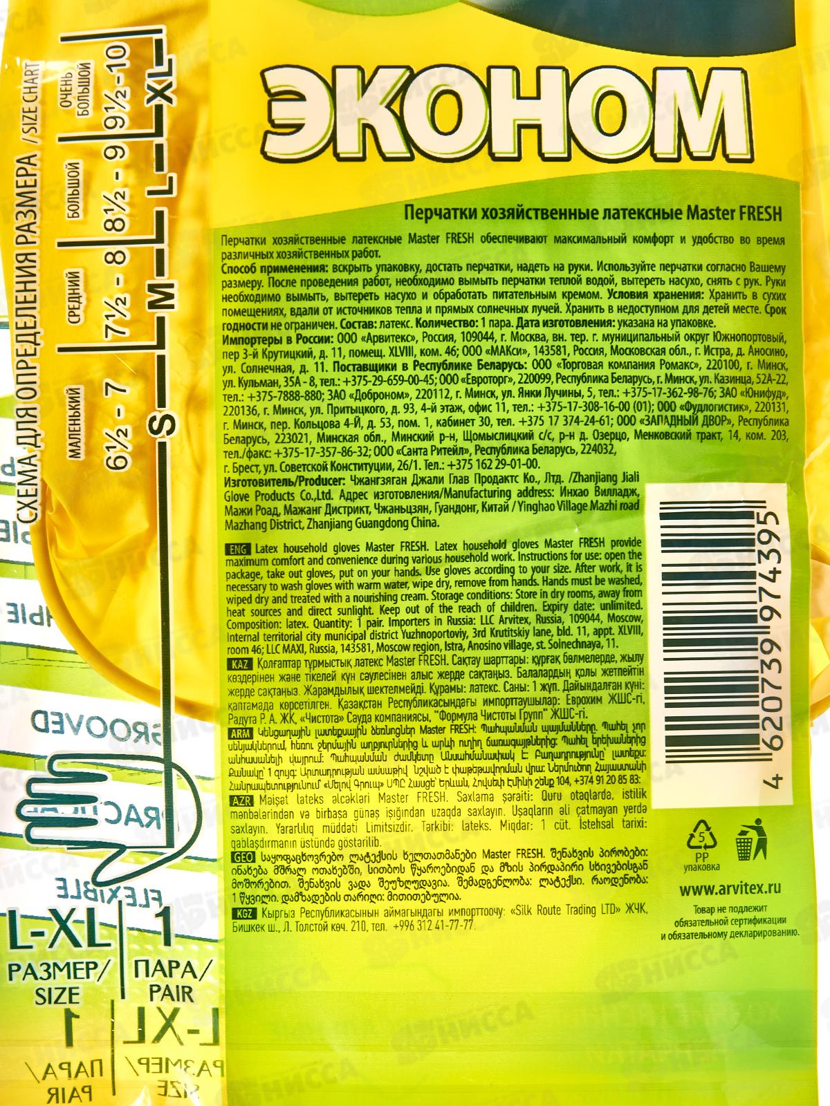 Master FRESH Перчатки хоз Эконом латекс болш С0006058
