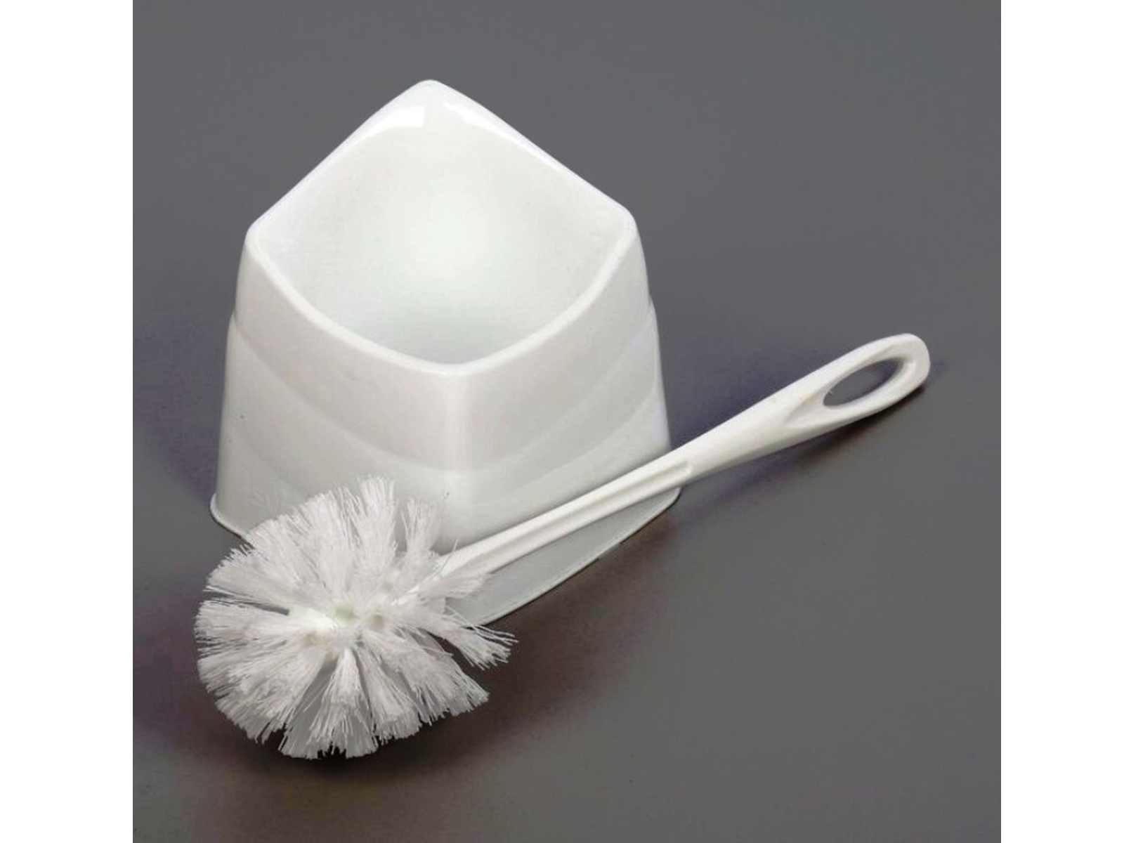 Комплект угловой - туалетный ершик на подставке создает идеальную чистоту в ванной комнате. Загрязнения и известковый налет тщательно удаляют плотно набитые гибкие ворсинки ершика, расположенные под углом. Они проникают во все труднодоступные места, а их волнообразная форма создает дополнительное трение при чистке и повышает эффективность уборки. Щетина с эффектом памяти восстанавливает свою форму после использования. Для комфортной уборки ручка ершика сделана длинной. Подставка для ершика с квадратными формами, выполнена в минималистичном дизайне. Подставка скрывает ершик и выполняет гигиеническую функцию. Для удаления бактерий чашу для хранения ершика можно наполнять чистящими средствами. Ершик на подставке впишется в любой современный интерьер. Набор изготовлен из прочного технологичного пластика, устойчивого к бытовой химии.