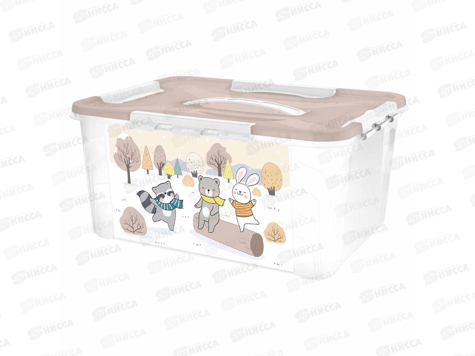 Особая крышка может открываться откидным способом, а может сниматься полностью. Крышка плотно фиксируется с помощью четырех замков по периметру. Благодаря удобной прочной ручке коробку можно переносить с места на место. Специальная выемка на крышке позволяет спрятать ручку для штабелирования коробок. Декор нанесен с помощью технологии IML: он не стирается и не повреждается в процессе использования. Ящик изготовлен из безопасного полипропилена, не имеет острых углов.