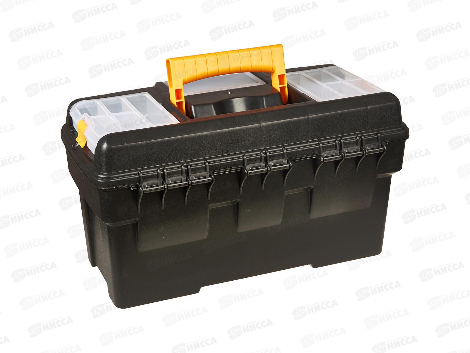 Ящик для инструментов используется для хранения и транспортировки ручного инструмента. В ящике предусмотрен вкладыш для инструментов с внутренними перегородками, вместительное главное отделение позволяет организовать хранение множества инструментов. На крышке расположены 3 практичных органайзера. С лицевой стороны ящика для инструментов расположена функциональная консоль для сортировки мелочей. При изготовлении используется прочный пластик, обеспечивающий длительный срок эксплуатации. Застежки выполнены из металла.
