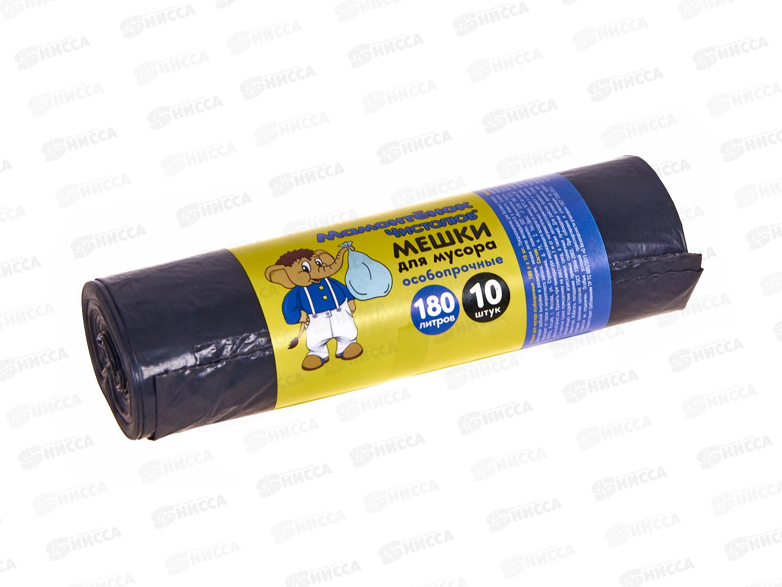 Мешки для мусора 180литров 10шт (рулон) Особопрочные "Мамонтенок" 30мкм ПВД *20