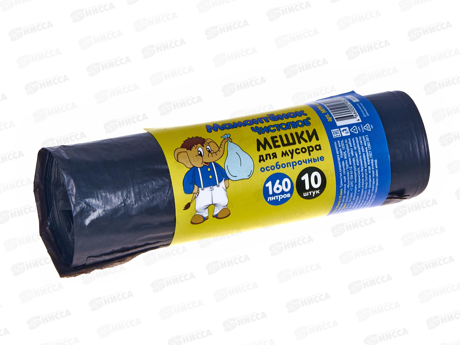 Мешки для мусора 160л 10шт (рулон) Особопрочные "Мамонтенок" 30мкм ПВД *20
