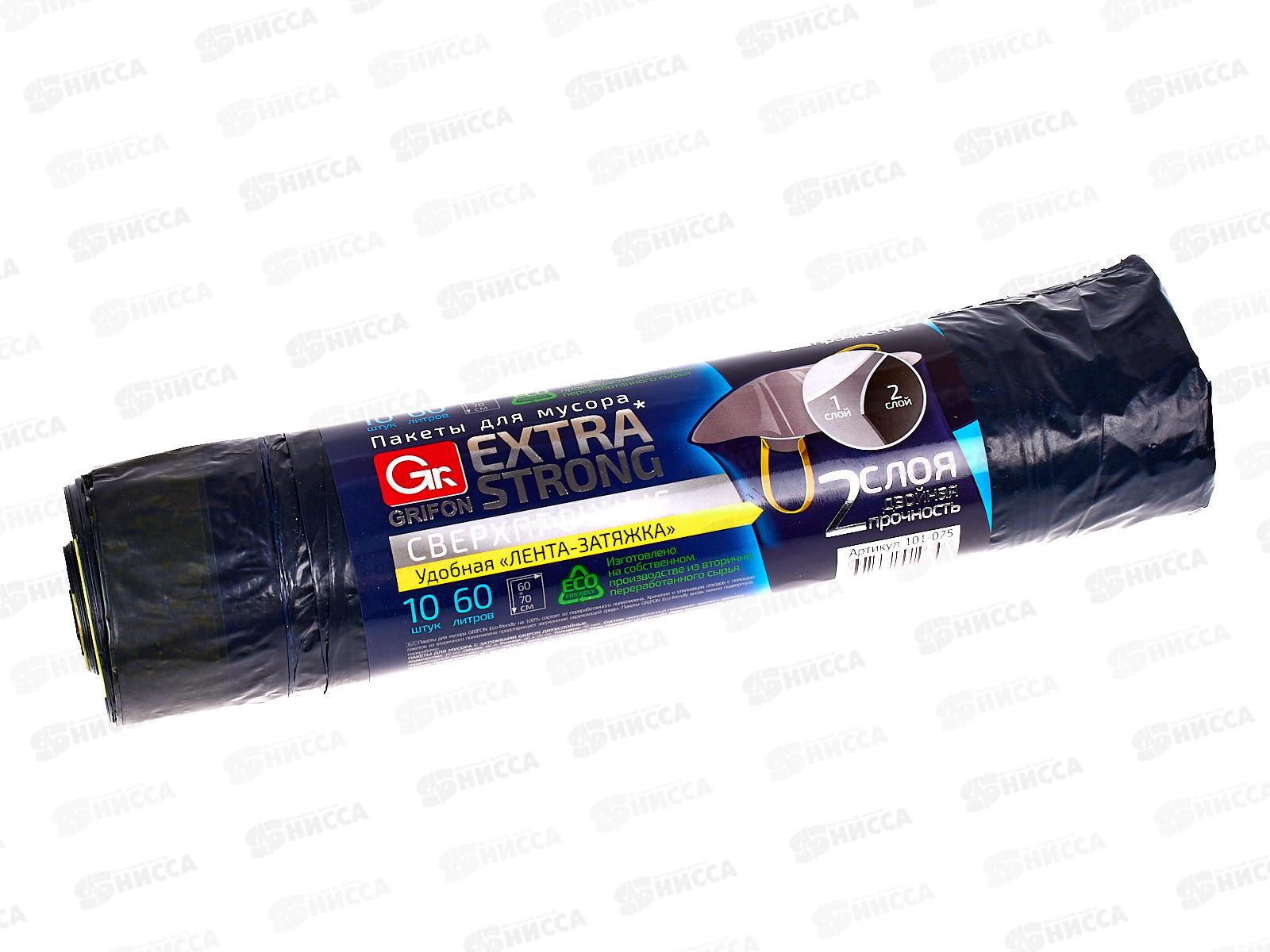 Пакеты для мусора GRIFON двухслойный с завязками 60л 10шт рулон 101-075 *30