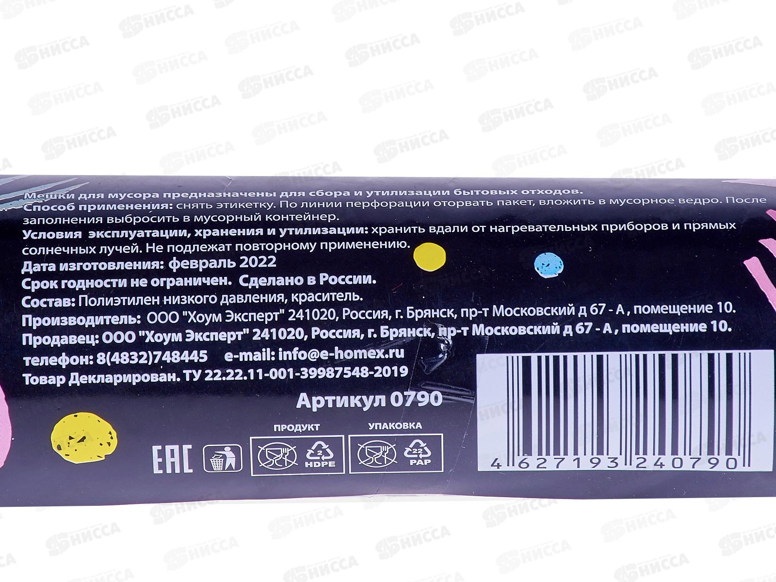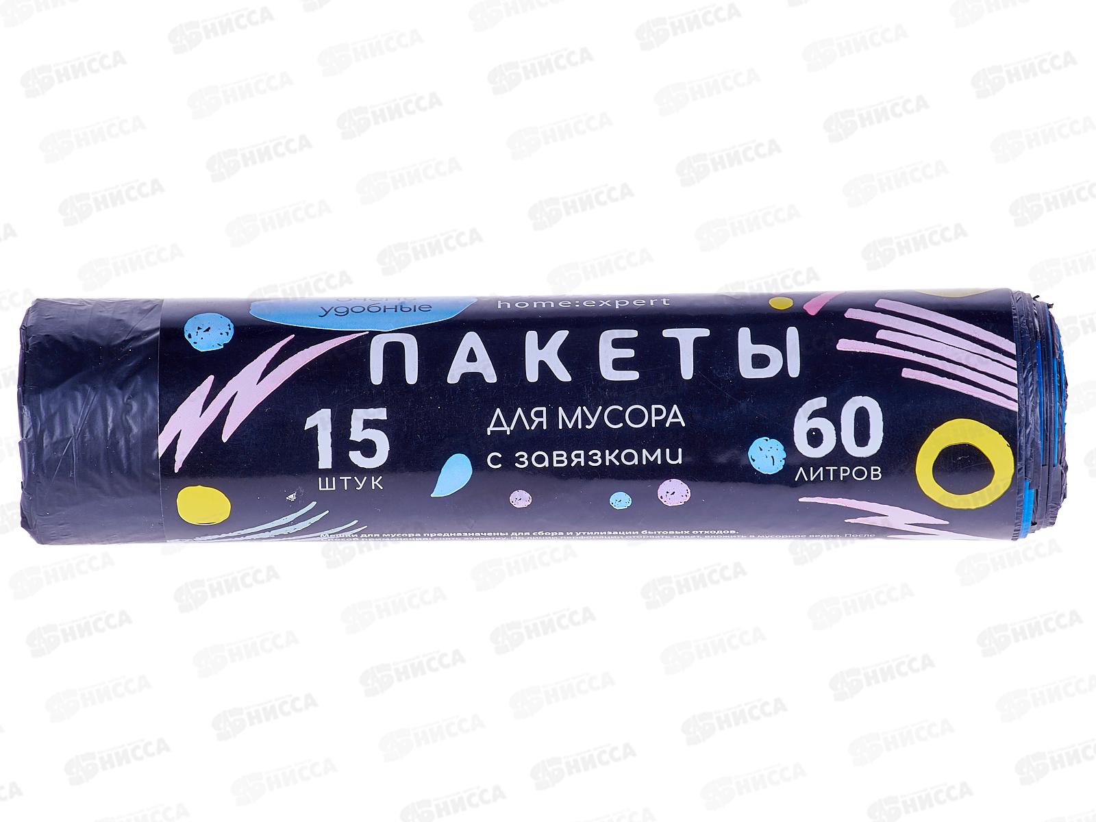 HOMEX пакеты для мусора Очень Удобные 60л 15шт с завязками *25