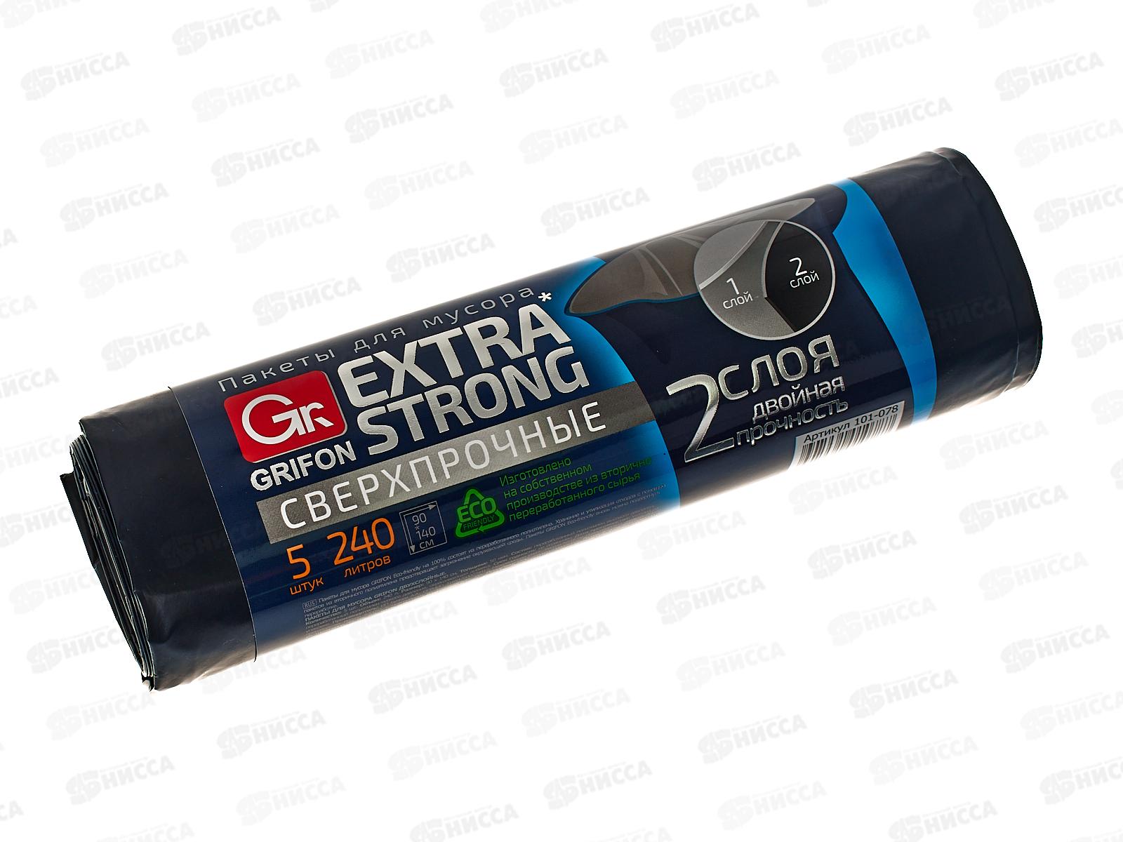 Пакеты для мусора GRIFON двухслойные 240л 5шт рулон 101-078 *18