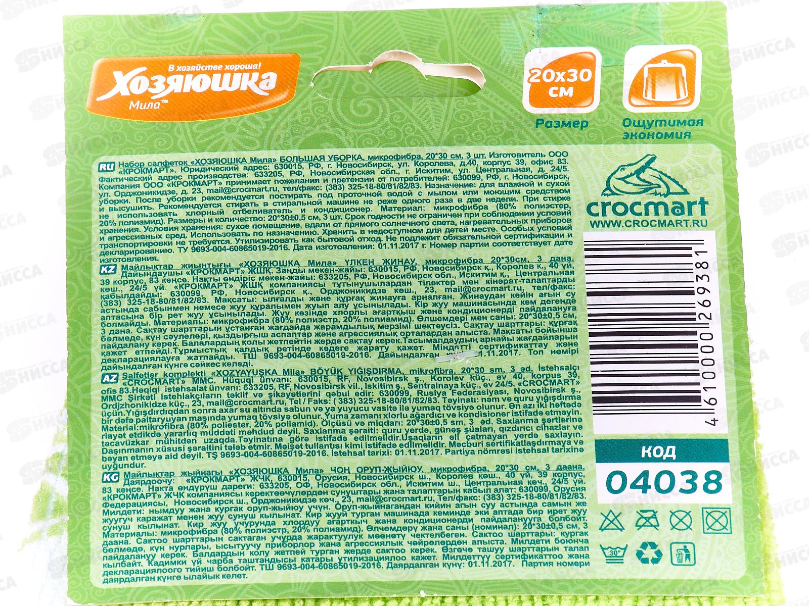Набор салфеток ХОЗЯЮШКА Большая уборка микрофибра 20*30см 3шт *36