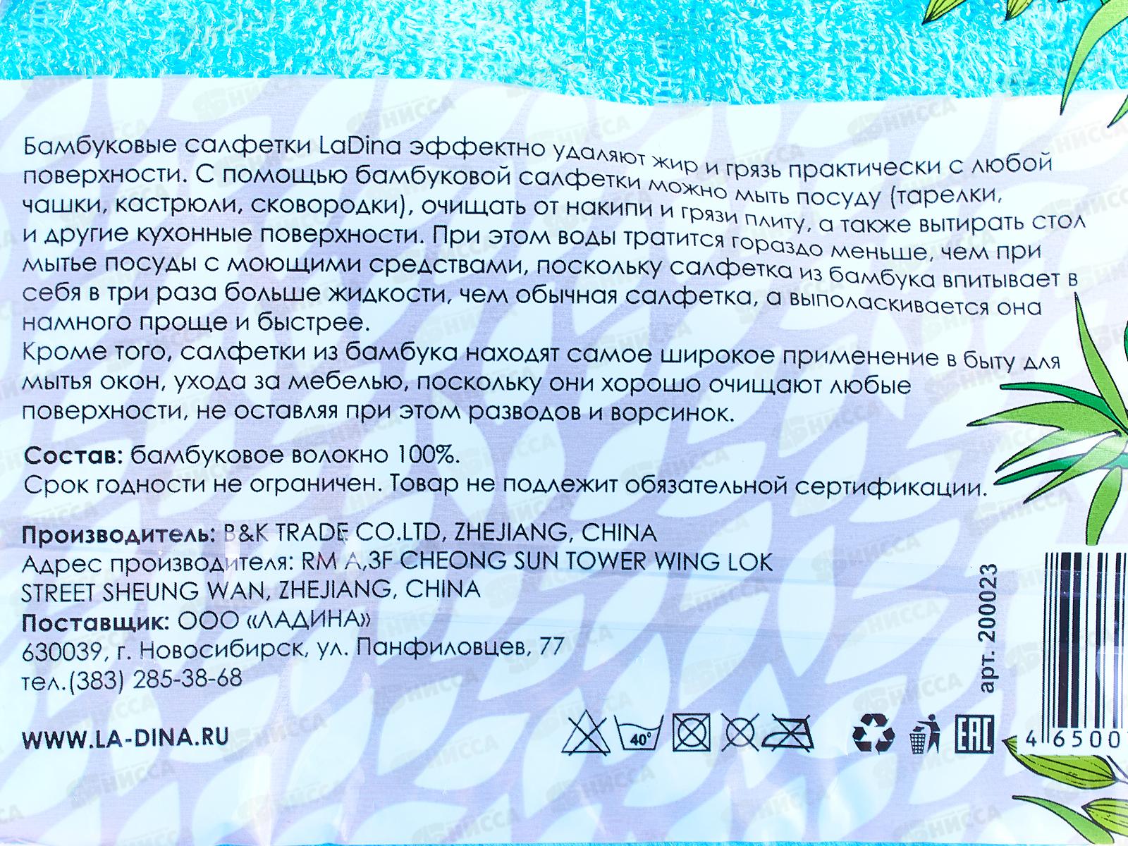 Салфетка на 100 % состоит из бамбуковых волокон. Бамбуковые волокна обладают природными антисептическими и антибактериальными свойствами. Поэтому такие салфетки уже много лет пользуются огромной популярности в Азии. Благодаря своей особой структуре, идеально впитывает масло и жир, при этом легко выполаскивается проточной водой. Прекрасно отмывает посуду под струей воды, без применения вредных моющих средств. При этом масло и жир не остаются на поверхности салфетки, а смываются водой; Идеально подходит для ухода за стеклокерамической плитой. Легко удалит брызги масла и жира с её поверхности без бытовой химии, не оставив при этом разводов. Салфетку время от времени нужно хорошо просушивать, чтобы она сохраняла свою свежесть!