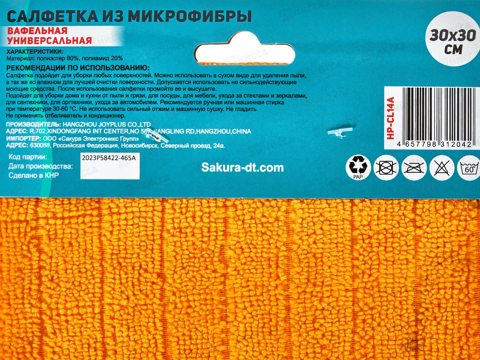 Салфетка HP-CL14A Вафельная микрофибра 30*30см Оранжевый *400