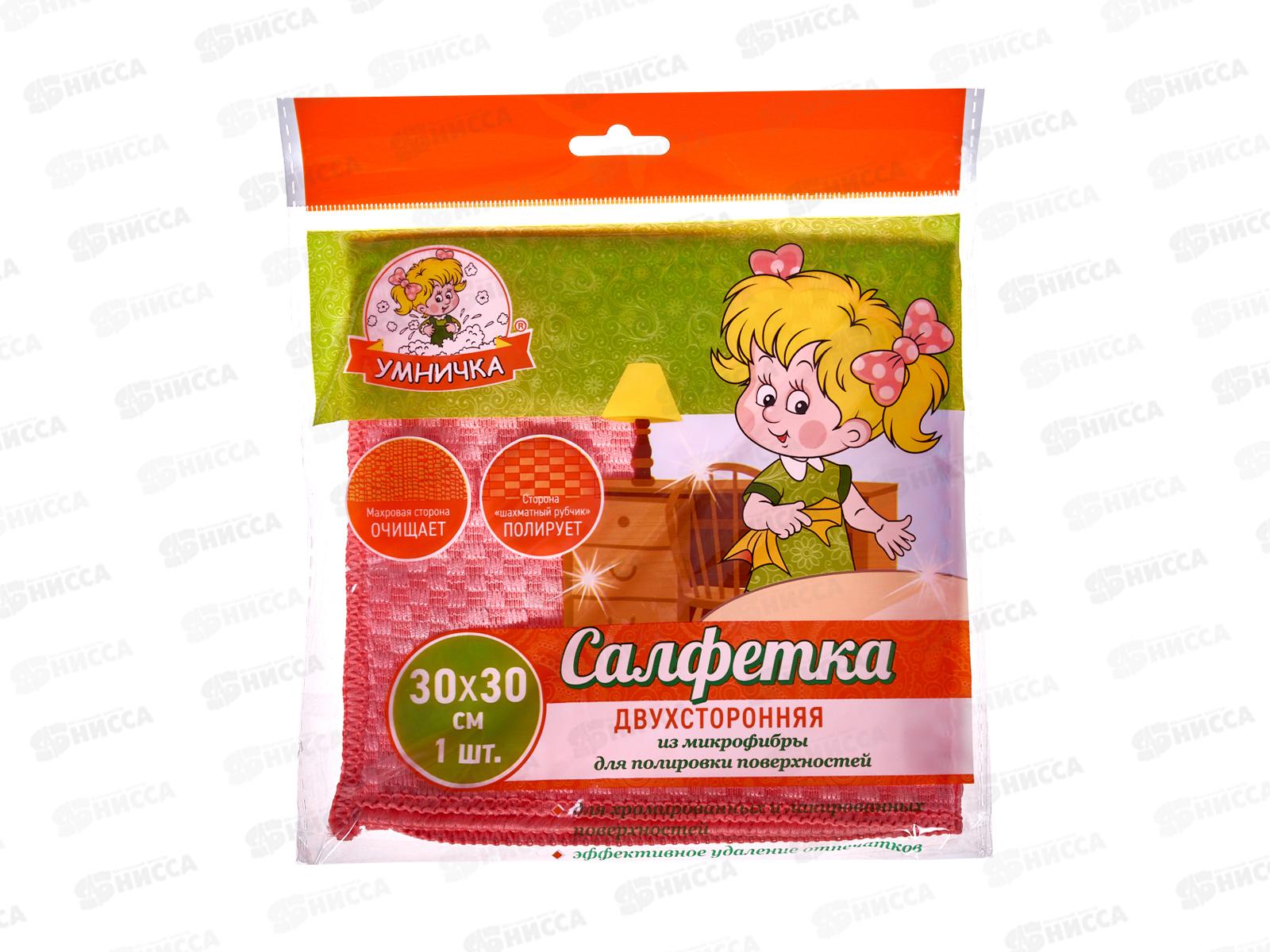 Салфетка двусторонняя "Умничка" 30*30см микрофибра 1шт *60 МП