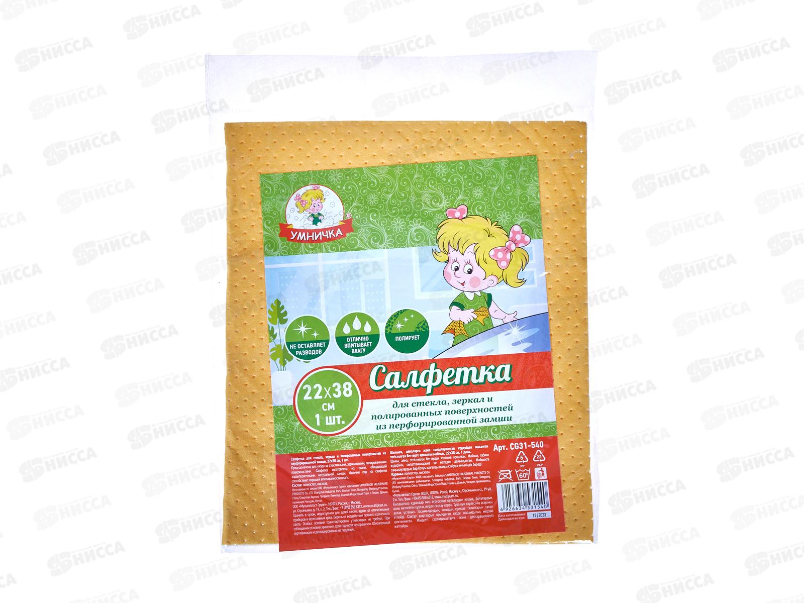 Салфетка д/стекла "Умничка" перфорир замша 22*38см 1шт *70 МП