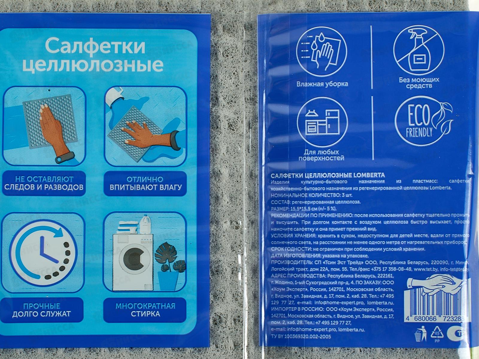 Салфетки Lomberta для уборки целлюлозные 3шт 72388 *24