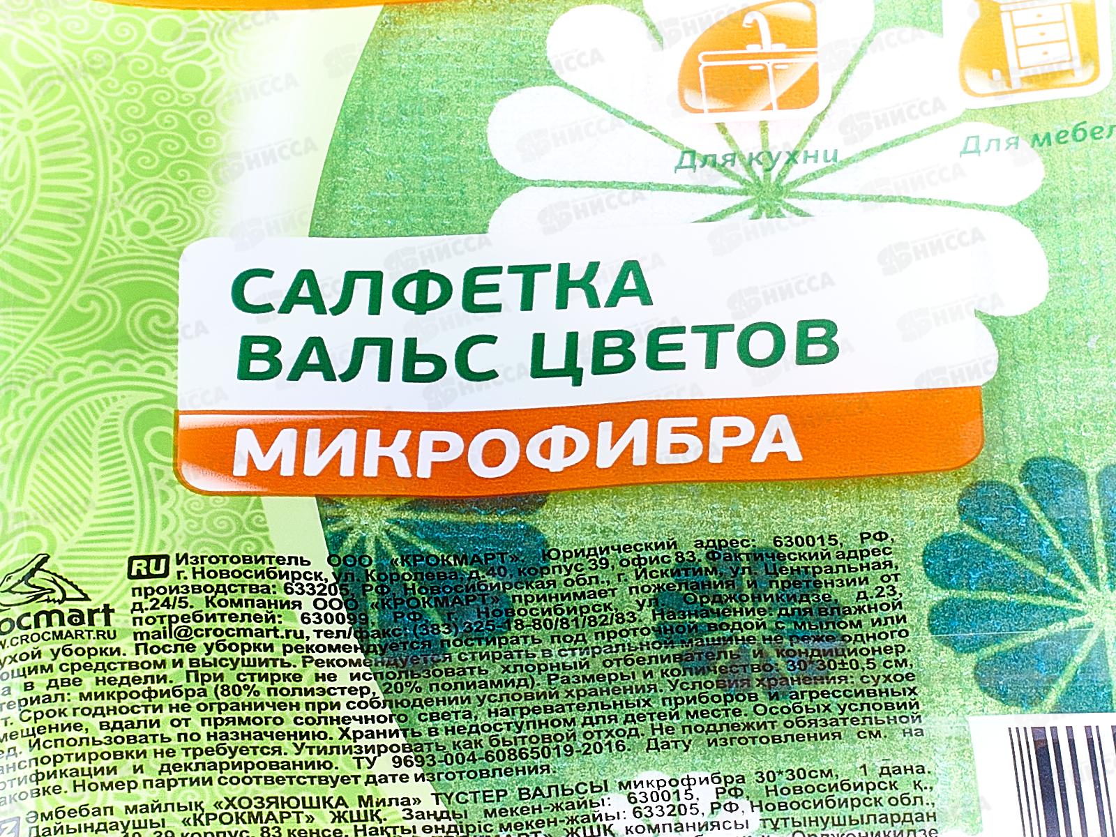 Салфетка ХОЗЯЮШКА Вальс цветов микрофибра 30*30*70