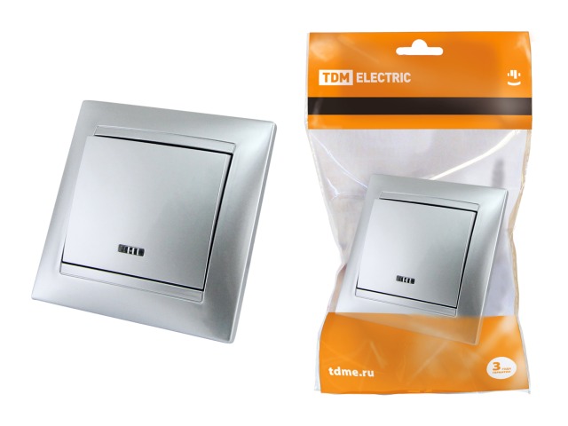 Выключатель TDM 1-клавишный открытой установки,подсветка, 10А серый металлик "Лама", 0204 *10